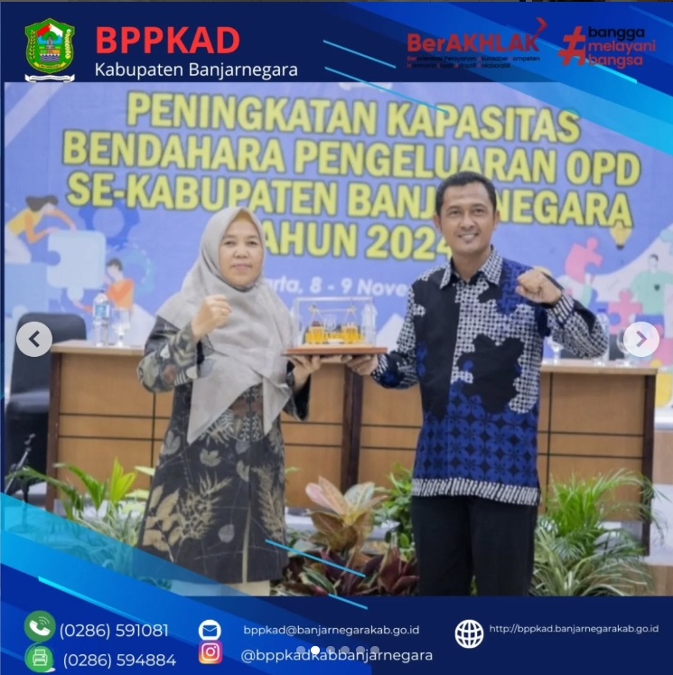 Badang Pengelolaan Pendapatan, Keuangan dan Aset Daerah (BPPKAD) Kabupaten Banjarnegera pada hari Jum’at s.d Sabtu, tanggal 8 -9 November 2024 bertempat di Griya Persada, Kaliurang Yogyakarta telah melaksanakan Bimbingan Teknis Peningkatasn Kapasitas untuk Bendahara Pengeluaran OPS/SKPD se Kabupaten Banjarnegara yang diikuti 60 orang.