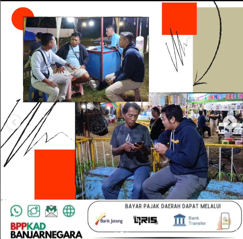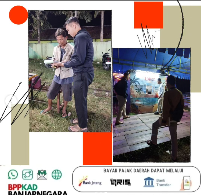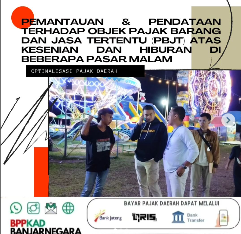 Bersama dengan Anggota Satuan Polisi Pamong Praja Kabupaten Banjarnegara, BPPKAD Kabupaten Banjarnegara melakukan pemantauan dan pendataan terhadap Objek Pajak Barang dan Jasa Tertentu (PBJT) atas Kesenian dan Hiburan di beberapa Pasar Malam. Adapun pasar malam tersebut tersebar di beberapa titik seperti: