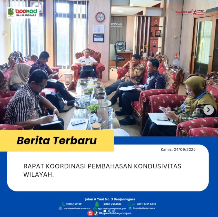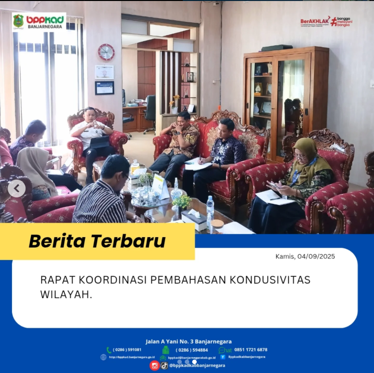 Rapat Koordinasi pembahasan kondusivitas wilayah. Rapat dipimpin oleh Kepala BPPKAD dan dihadiri oleh Kepala Bagian Hukum Setda, Kepala Bagian Umum, unsur dari Inspektorat, unsur dari Bakesbangpol, Kabid Perbendaharaan dan Kasda dan Kepala Seksi Bina Keuangan Daerah, bertempat di Ruang Rapat Kepala BPPKAD pd hari Kamis tgl 4 September 2025.