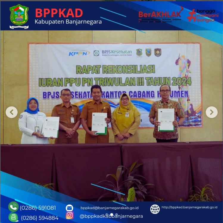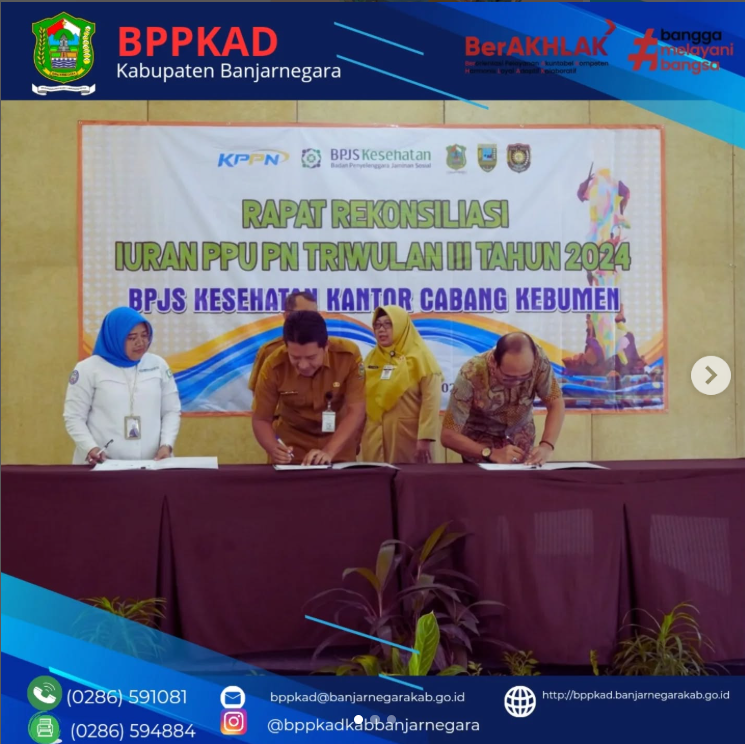 Pada hari Senin tanggal 09 Desember 2024 telah dilaksanakan acara rekon Iuran Wajib PPU PN Triwulan III yang digelar di Mexolie Hotel Kebumen yang dihadiri oleh BPPKAD, Dinas Kesehatan, Dinas Pendidikan, Pemuda dan Olah Raga dari Kabupaten Banjarnegara, Kebumen dan Purworejo selain itu juga dihadiri oleh KPPN Purworejo dan KPPN Banjarnegara serta tuan rumah yaitu BPJS Kesehatan Cabang Kebumen.