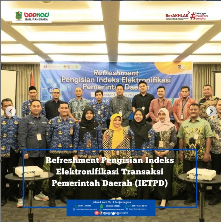 Kamis,17/7/2025. Kantor Perwakilan Bank Indonesia Purwokerto menyelenggarakan kegiatan Refreshment Pengisian Indeks Elektronifikasi Transaksi Pemerintah Daerah (IETPD) di Hotel Java Heritage, yang diikuti oleh perwakilan Tim Percepatan dan Perluasan Digitalisasi Daerah (TP2DD) se-Eks Karesidenan Banyumas. Kegiatan ini bertujuan untuk mempercepat dan memperluas implementasi ETPD sebagai upaya meningkatkan pendapatan asli daerah (PAD), transparansi, dan akuntabilitas keuangan daerah melalui digitalisasi transaksi, termasuk pajak dan retribusi. Tujuan utama dari kegiatan ini adalah mendorong pemerintah daerah dalam menyusun peta jalan dan rencana aksi elektronifikasi yang terstandardisasi, terintegrasi, dan aplikatif. Diharapkan melalui kegiatan ini, pemerintah daerah semakin siap menghadapi tantangan digitalisasi dan mampu menciptakan tata kelola keuangan yang efisien, transparan, dan berkelanjutan.