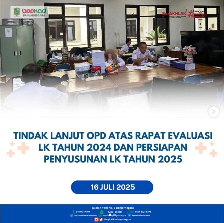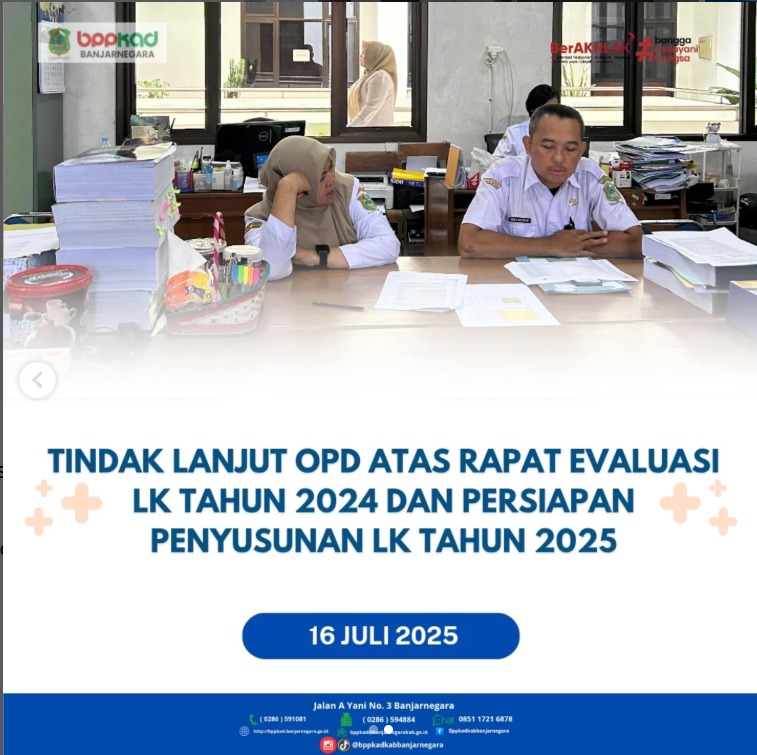 Telah dilaksanakan kegiatan tindak lanjut OPD atas Rapat Evaluasi Laporan Keuangan Tahun 2024 dan persiapan penyusunan Laporan Keuangan Tahun 2025.